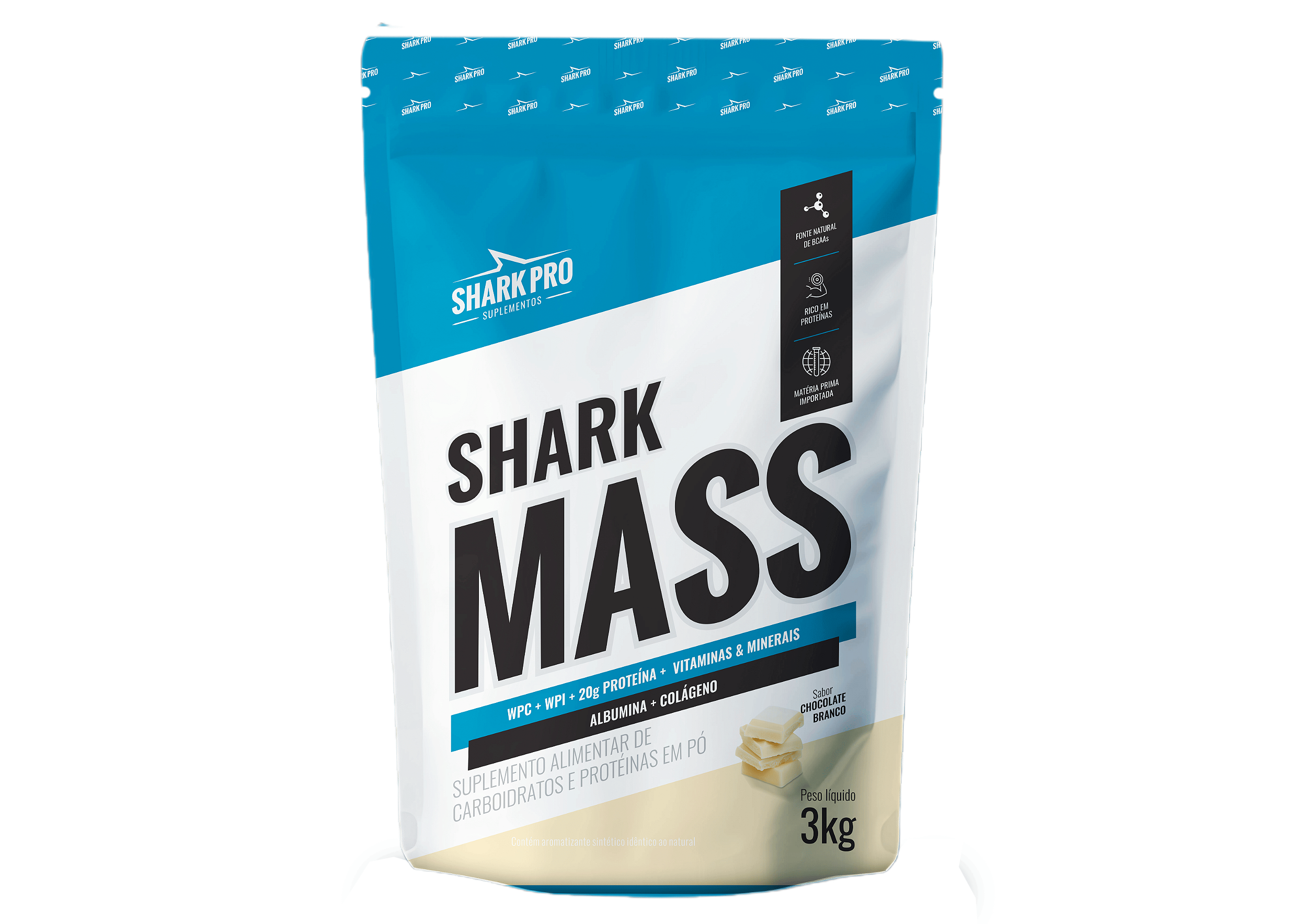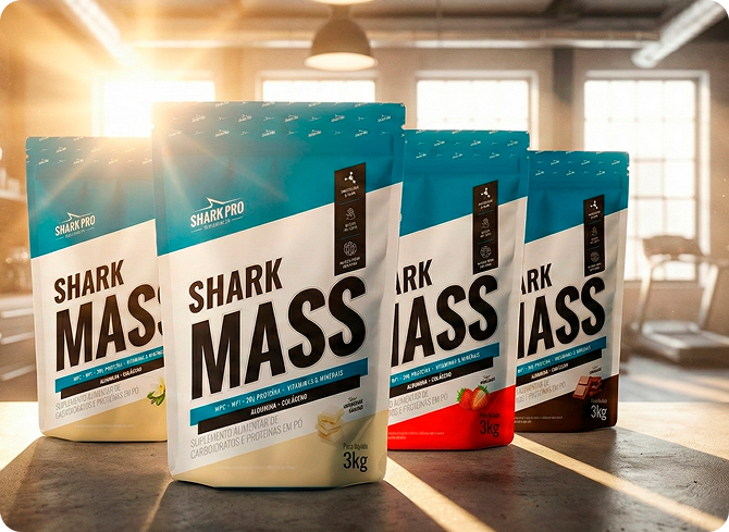 O Shark Mass é o hipercalórico da Shark Pro desenvolvido para quem busca ganho de peso, força e volume muscular com suporte nutricional completo.