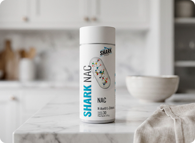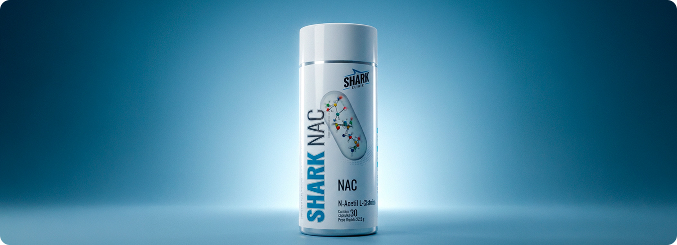 O Shark NAC é um suplemento da Shark Clinic desenvolvido com N-Acetil-L-Cisteína (NAC), um dos antioxidantes mais estudados no mundo, reconhecido por sua capacidade de proteger as células e auxiliar na desintoxicação do organismo.