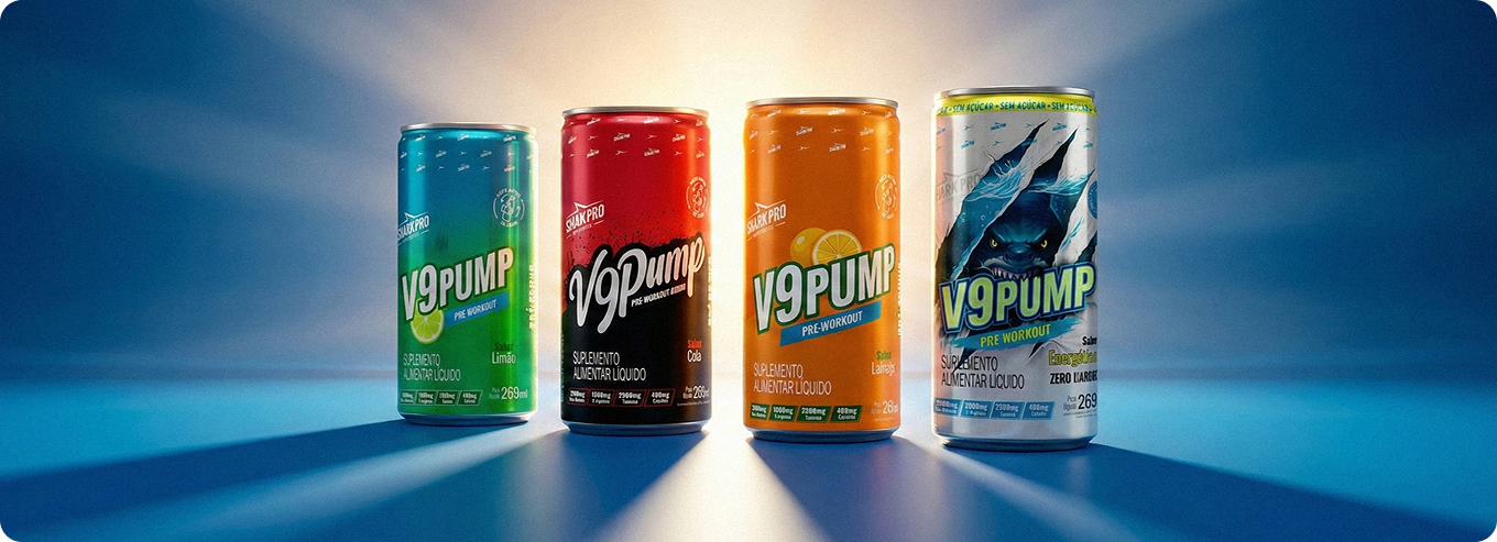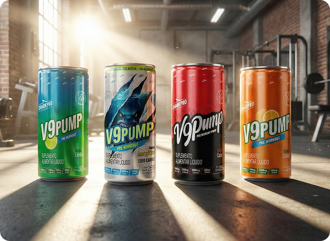 O V9 Pump Drink Shark Pro é o pré-treino pronto para beber que acelera seu desempenho de forma prática e explosiva.